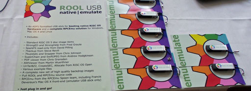 RISC OS Open Ltd had a new development at the show: Two USB sticks under the banner “native|emulate” (which are now available from their website) each selling for £10.
